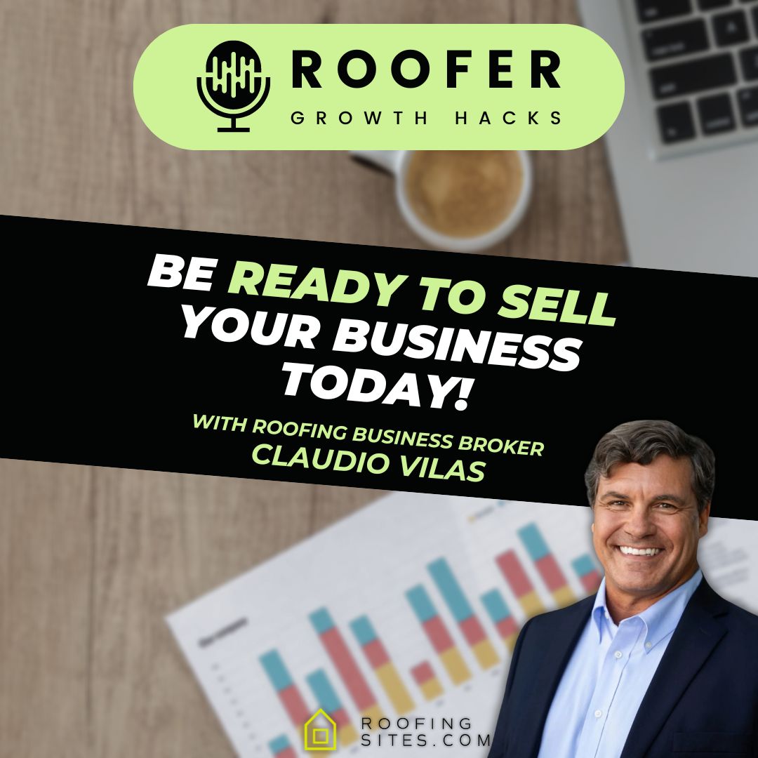 Are you looking to sell your business in the next 5 years? Whether you want to sell in the future or not, you need to be ready to sell TODAY. We are joined by Roofing Business Broker, Claudio Vilas, to discuss all of the guardrails that our roofers should have in their business so they are ready to sell. Claudio breaks down how business owners can start implementing habits and the details business owners should take to get everything above board when life inevitably happens.